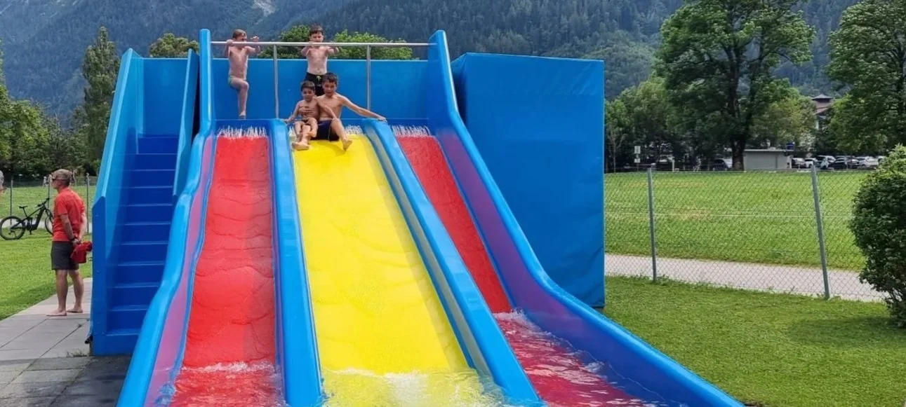 מתחם Atoll Achensee (מאורך): מעבר לבריכות הפנימיות המפוארות, יש למתחם חוף רחצה פרטי ומסודר על שפת האגם עם גישה נוחה למים, מדשאות, ומתקני משחקים נהדרים לילדים.